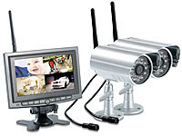 Inhalt: 2 IR-Funk-Kameras sowie 7"-TFT-Monitor, jeweils inkl. Netzteil und Wandhalterung, AV-Kabel, Fernbedienung, deutsche Anleitung