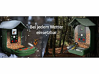 Füttern Sie Vögel und filmen Sie sie dabei: Ihr neues Vogelfutterhaus bietet Ihren gefiederten Freunden ein Festmahl - und Ihnen spektakuläre Nahaufnahmen von Amsel, Meise, Spatz & Co. dank integrierter Full-HD-Kamera.Tierbeobachtung leichtgemacht: Dank PIR-Bewegungssensor nimmt die Kamera automatisch Fotos und Videos auf, sobald sich etwas in ihrem Blickfeld bewegt - dank integriertem Mikrofon sogar mit Ton! Der große 110°-Weitwinkel sorgt dafür, dass auch wirklich alles aufs Bild kommt. Und die Infrarot-Nachtsicht enthüllt Ihnen, wer in der Dunkelheit Ihr Futterhäuschen besucht.