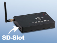 - Kartenslot für SD-Karte (im Receiver, max. 2 GB für 28.800 Bilder oder 4.380 Videoclips à 10 Sek.)